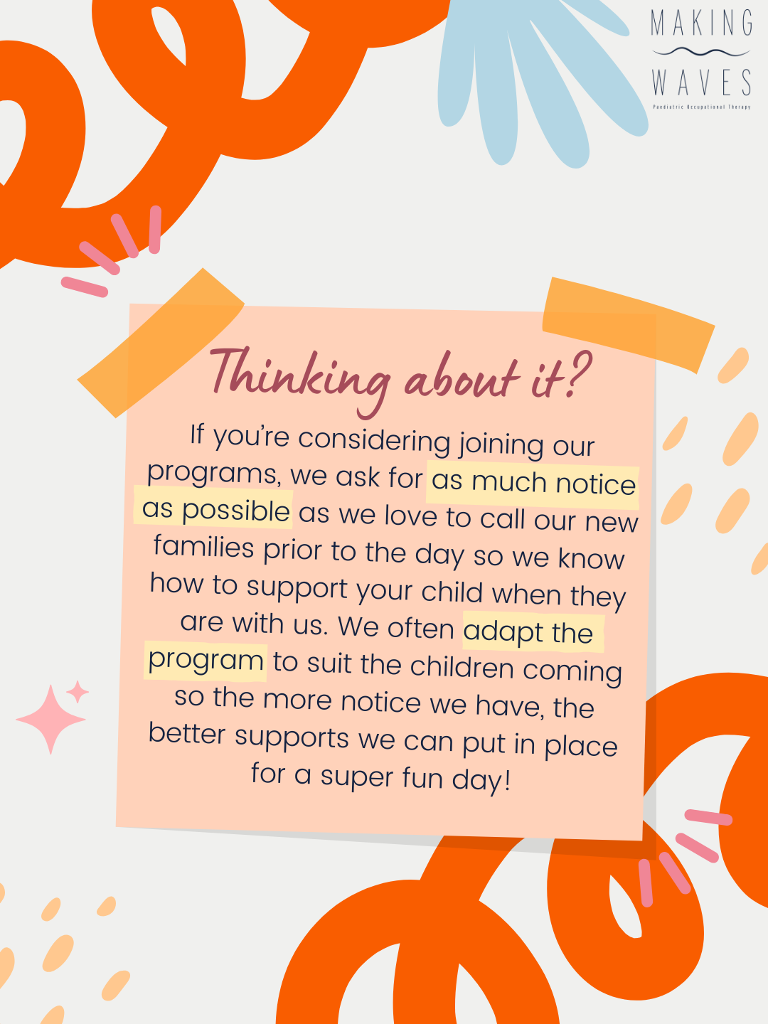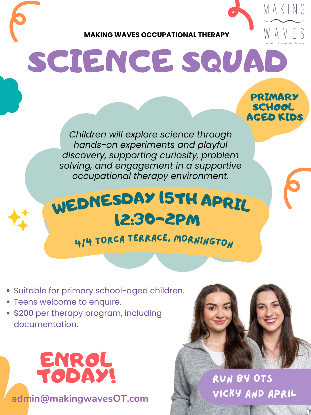 Our programs are run by Occupational Therapists and Therapy Assistants.